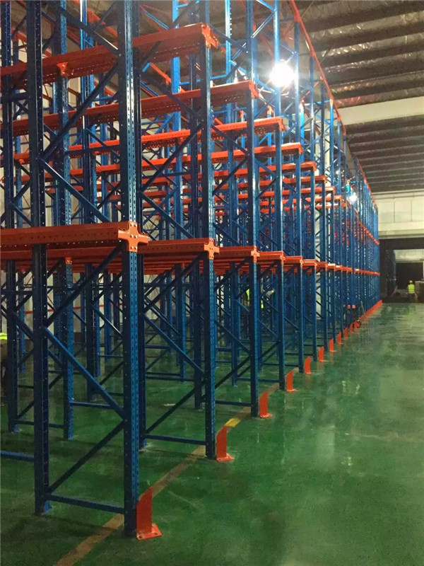 简介——贯通式货架又称通廊式货架或驶入式货架。贯通式货架可供叉车(或带货叉的无人搬运车)驶入通道存取货物,适用于品种少,批量大类型的货物储存。贯通式货架除了靠近通道的货位,由于叉车需要进入货架内部存取货物,通常单面取货建议不超过7个货位深度。为提高叉车运行速度,可根据实际需要选择配置导向轨道,与货位式货架相比